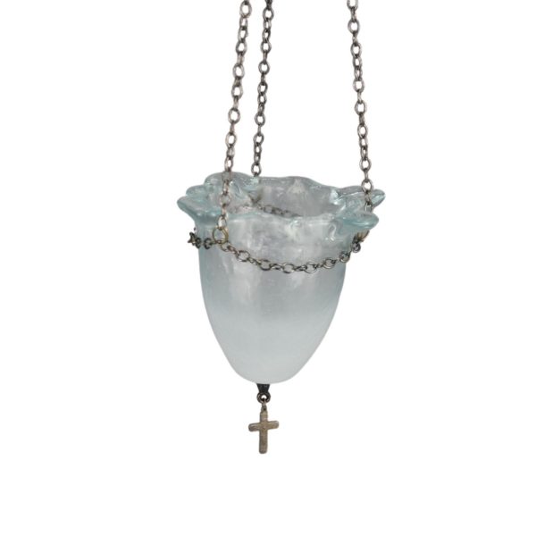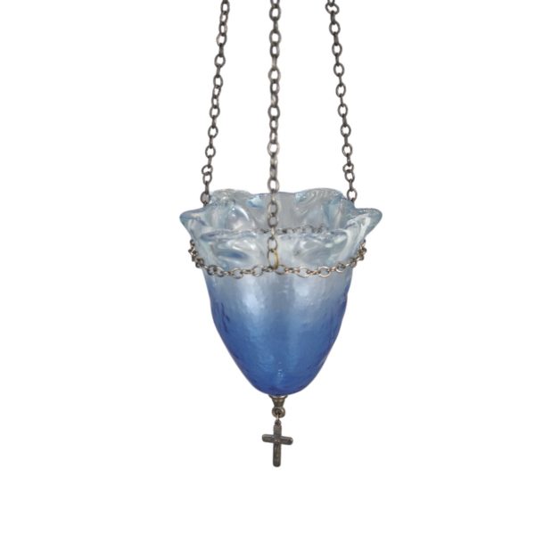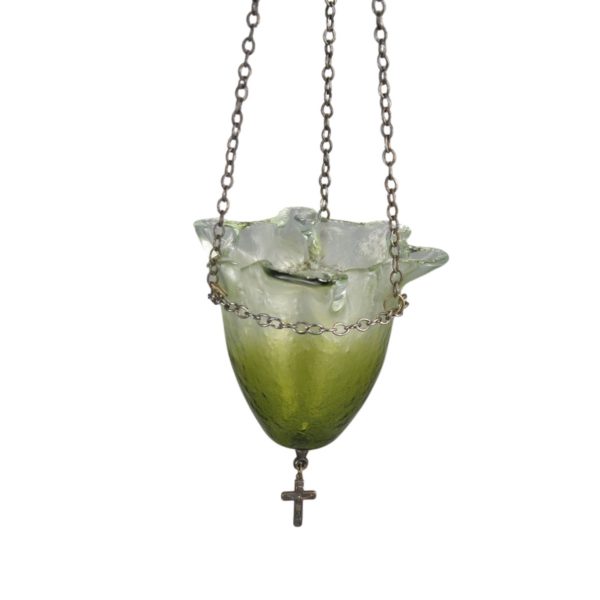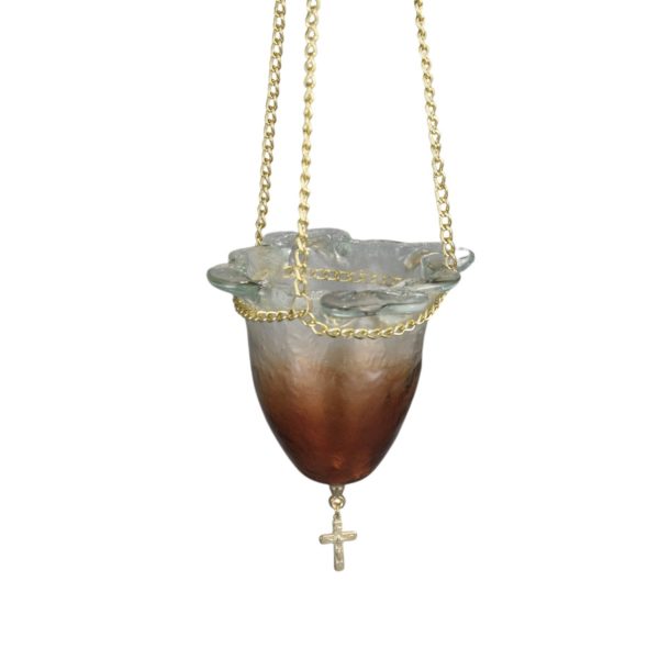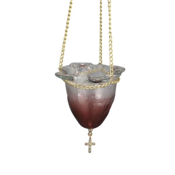 Καντήλι από χειροποίητο fusing γυαλί με υψηλή αντοχή, βαμμένο με υψηλής αντοχής χρώμα. Η οικονομικότερη πρόταση σε χειροποίητο καντήλι. Διατίθεται σε μπρονζέ αντικέ, νίκελ, ή χρυσή αλυσίδα.