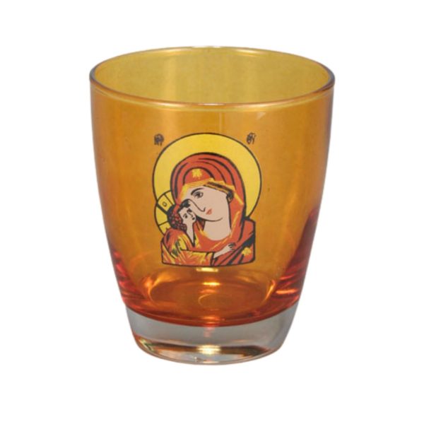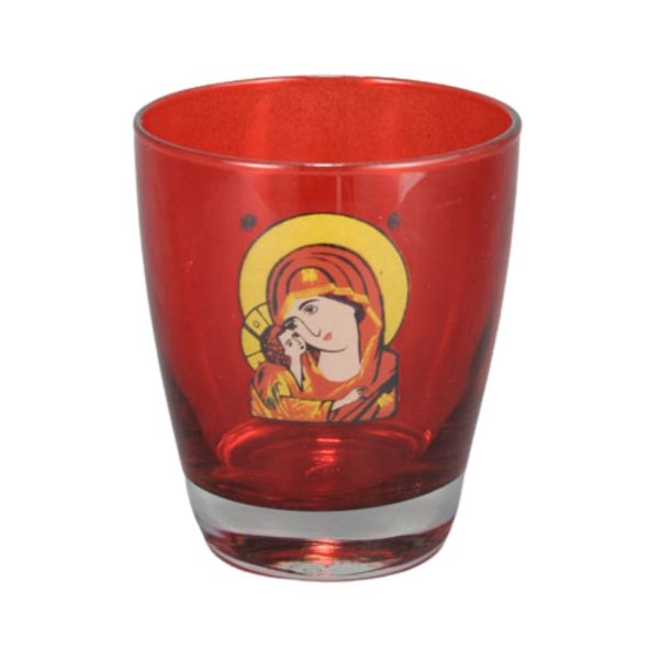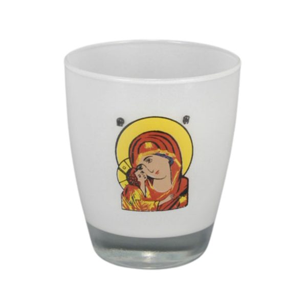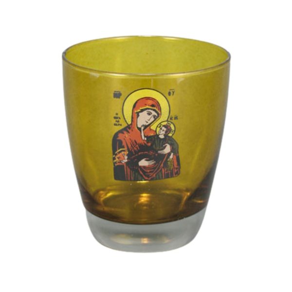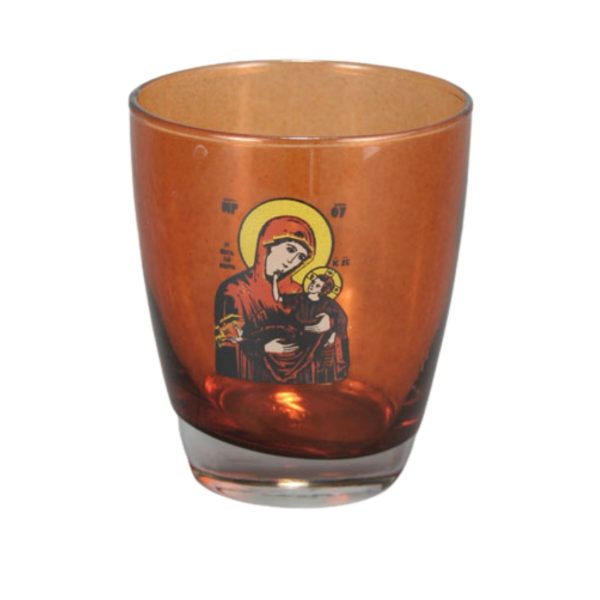Ποτήρι καντήλας από ανθεκτικό στη θερμοκρασία χοντρό γυαλί με ψημένη άφθαρτη χαλκομανία και ποιοτικά χρώματα που αντέχουν στο πλύσιμο. Η οικονομικότερη λύση για επιτραπέζιο καντήλι σε καταπληκτική τιμή χωρίς να στερείται ποιότητας. Καίει περίπου 4-5 ημέρες.