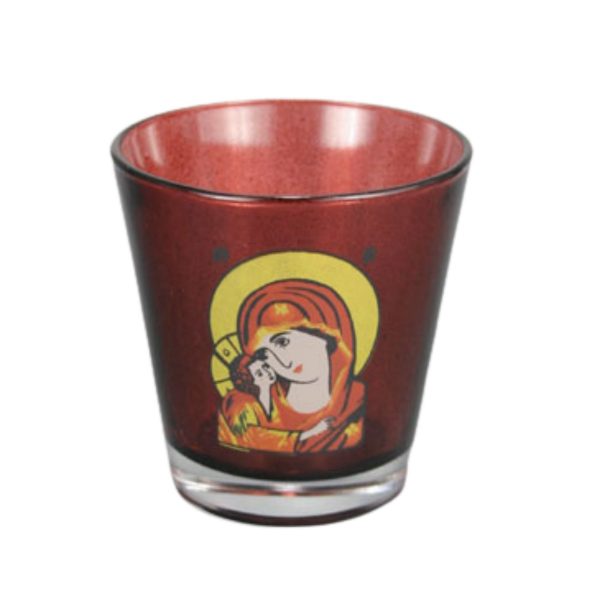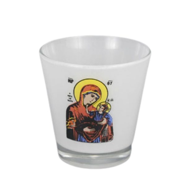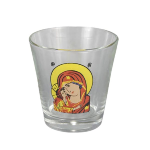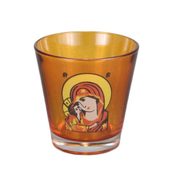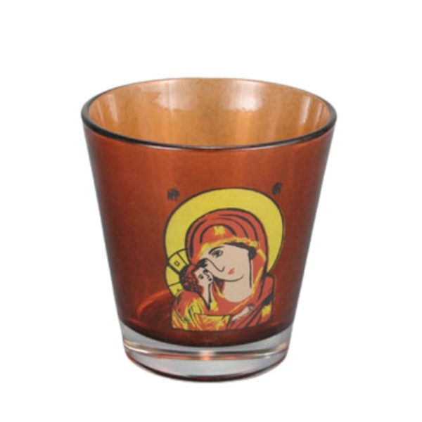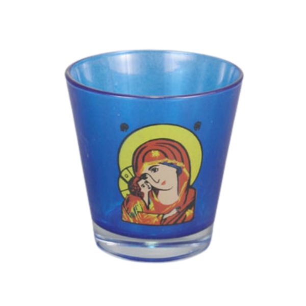 Ποτήρι καντήλας από ανθεκτικό στη θερμοκρασία χοντρό γυαλί με ψημένη άφθαρτη χαλκομανία και ποιοτικά χρώματα που αντέχουν στο πλύσιμο. Η οικονομικότερη λύση για επιτραπέζιο καντήλι σε καταπληκτική τιμή χωρίς να στερείται ποιότητας. Καίει περίπου 2-2,5 μέρες.