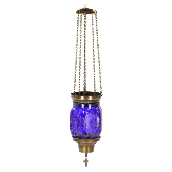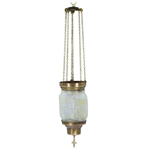 Συρόμενο καντήλι από επιχρωματισμένο fysing γυαλί, με επιμπρουτζωμένα μεταλλικά μέρη και λειτουργικό μηχανισμό κίνησης. Διατίθεται σε αντικέ, χρυσαφί και νίκελ αλυσίδα.